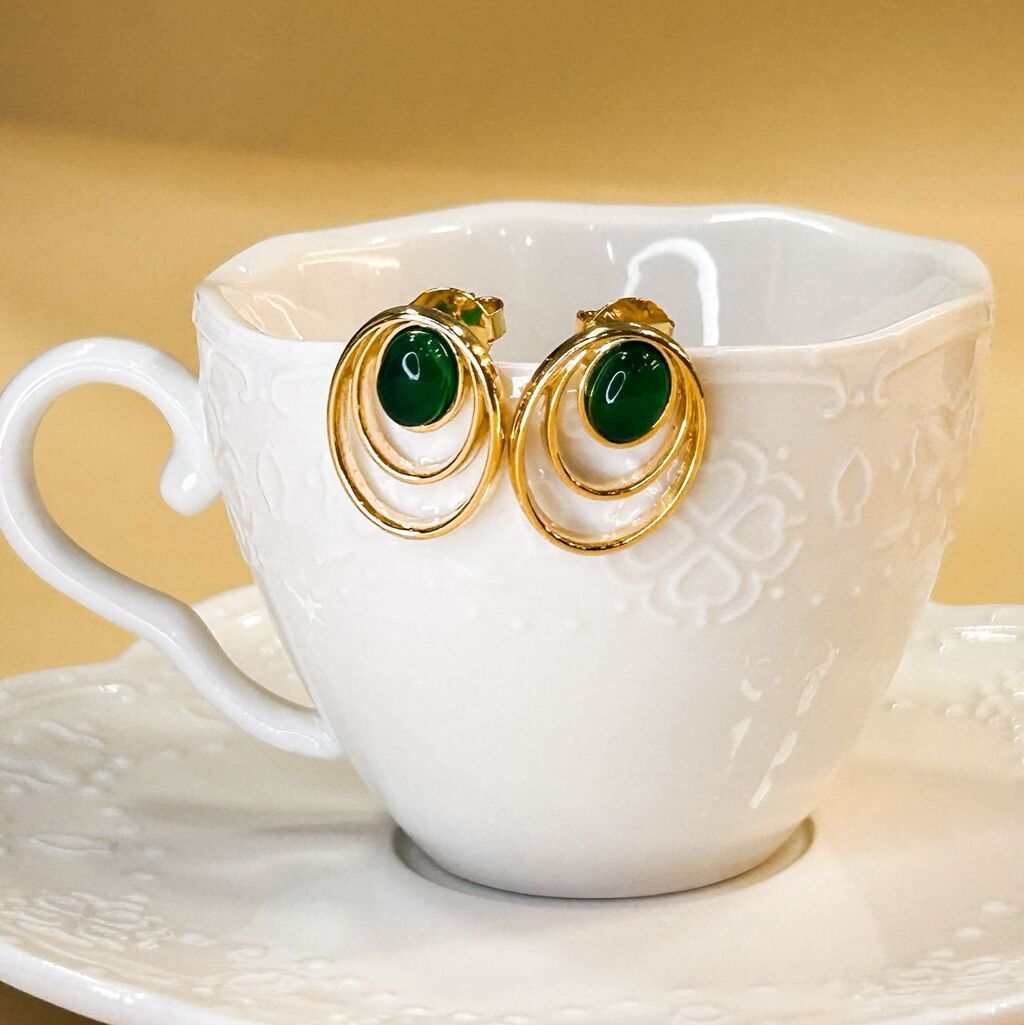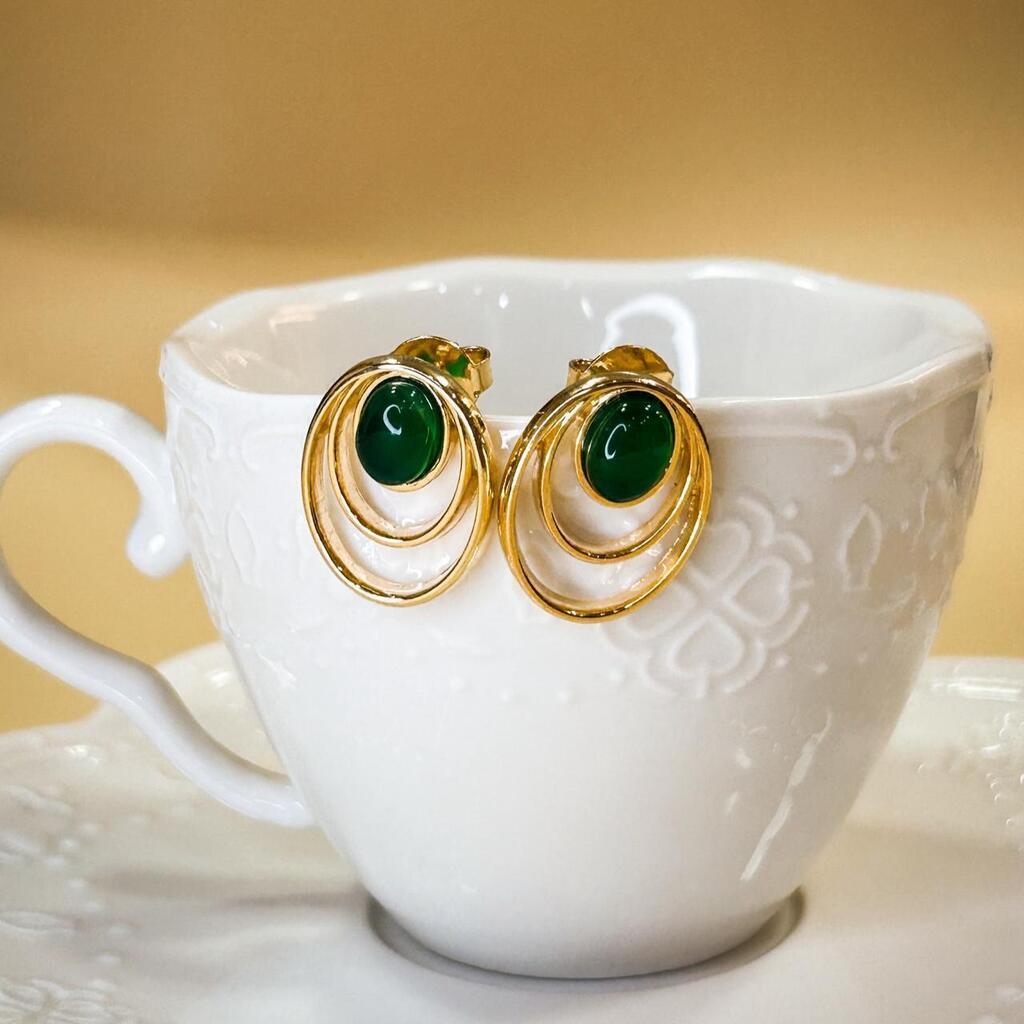 O Brinco Aura Ágata Verde transmite a energia vital da natureza. A pedra de ágata verde, envolvida pelo banho em ouro 18k, é símbolo de frescor e sofisticação.