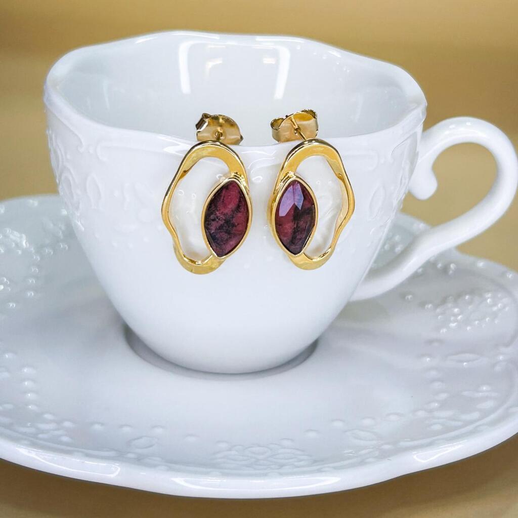 O Brinco Botão Rodonita simboliza o botão floral prestes a desabrochar. Com pedra natural de rodonita e acabamento em ouro 18k, é delicado e poético. Sua cor intensa e marcante ao mesmo tempo desperta a beleza com intencionalidade e elegância.