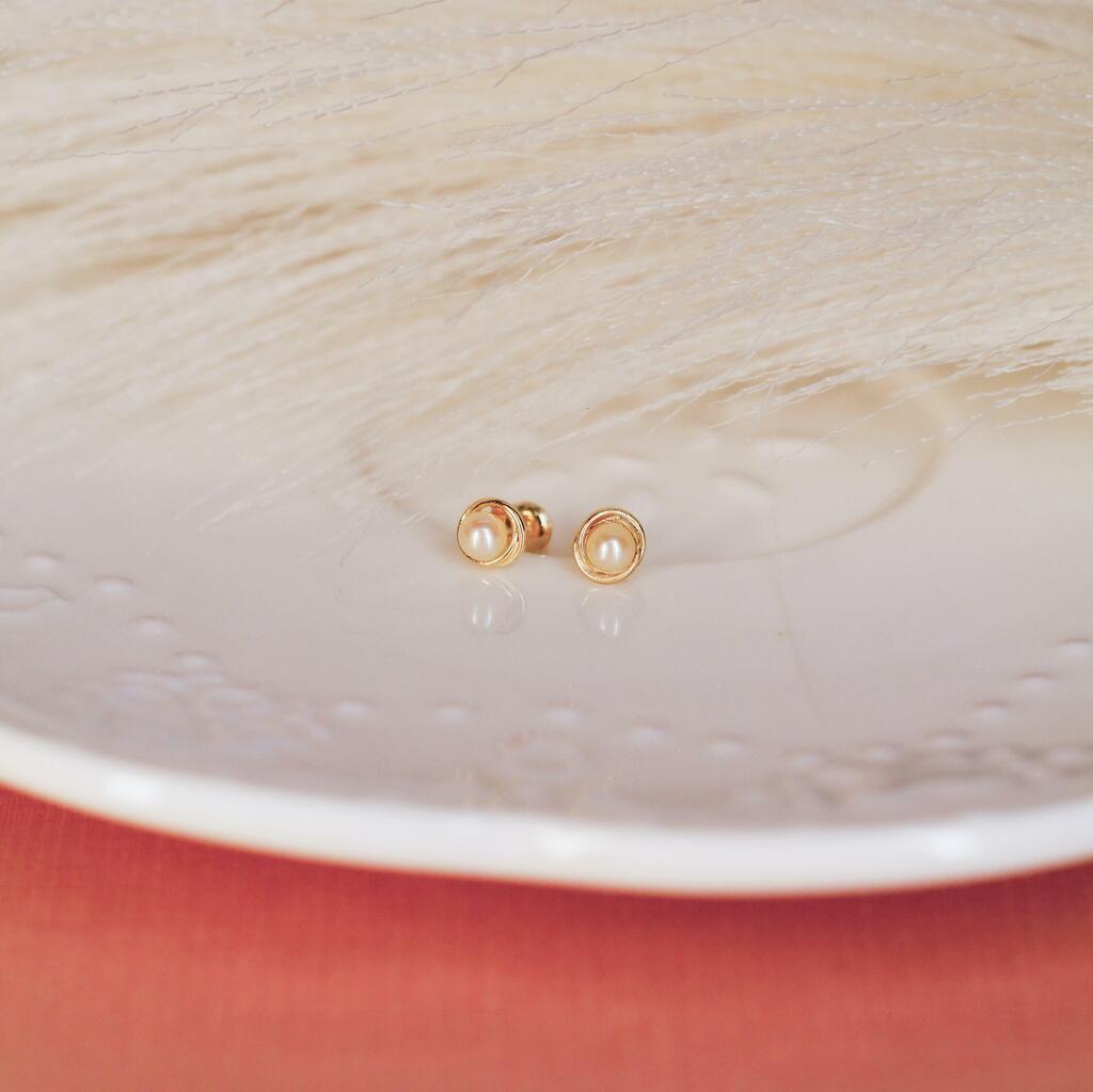 Brinco Design Pérola 3mm Ouro 18k