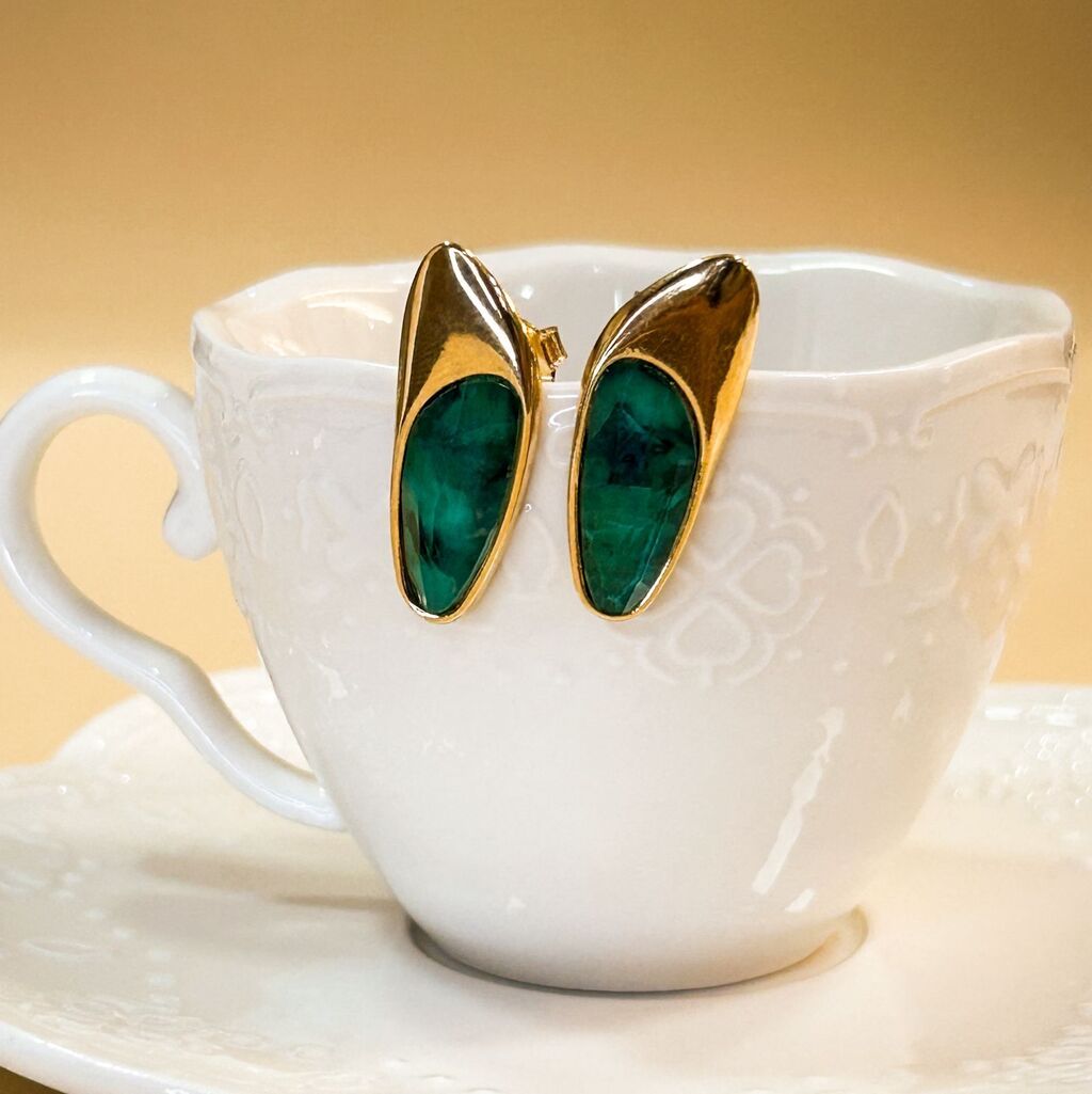 O Brinco Éden Esmeralda evoca o jardim perfeito, repleto de vida e abundância. A pedra natural de esmeralda, símbolo de vitalidade, é realçada pelo design moderno da joia e banho em ouro 18k, resultando em uma peça atemporal e sofisticada.