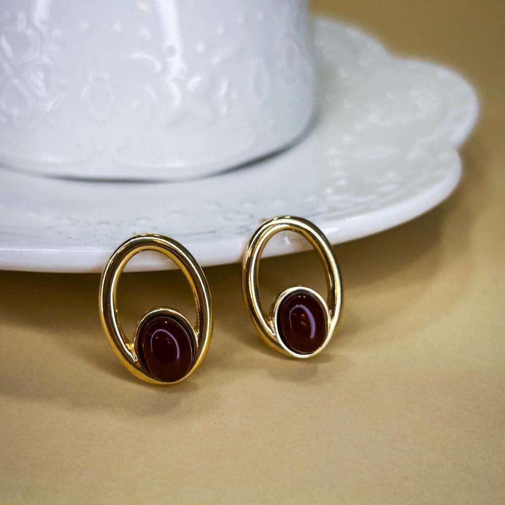 O Brinco Magnólia Ágata Vermelha une intensidade e feminilidade. A pedra natural de ágata vermelha contrasta com o banho em ouro 18k, resultando em uma joia marcante.