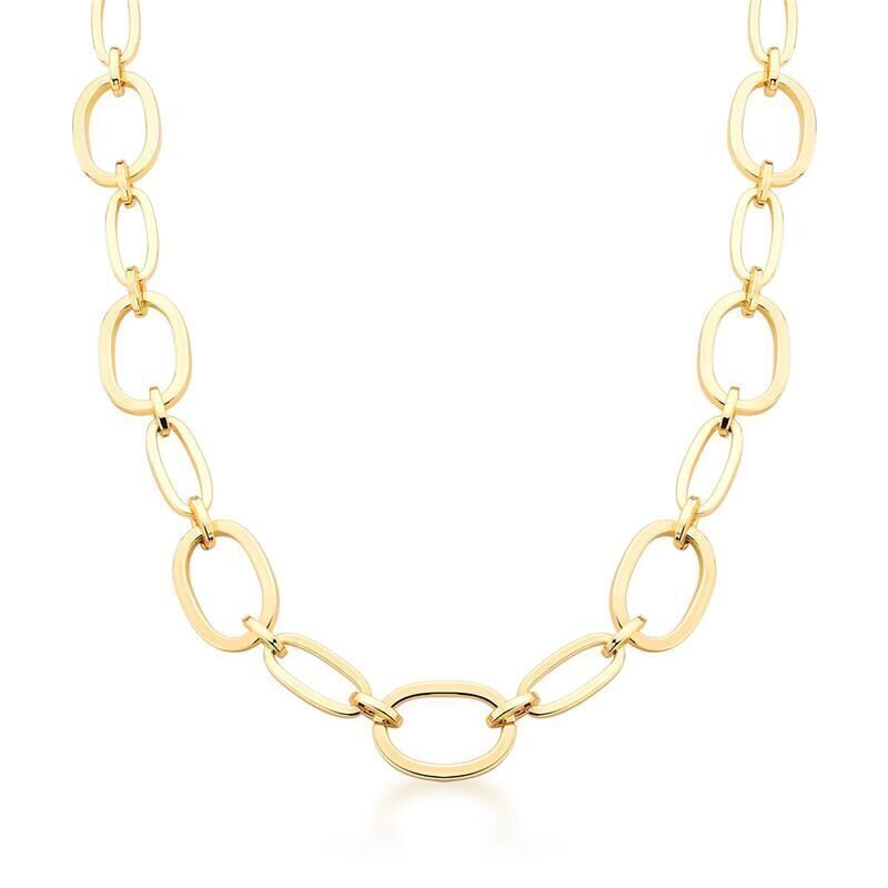 Com elos ovais intercalados e acabamento liso, esta corrente de 40cm é sinônimo de estilo contemporâneo. O fecho boia adiciona um toque de design à peça, que recebe brilho extra com o banho dourado. Um adorno versátil e sofisticado, ideal para usar sozinho ou em composições modernas.