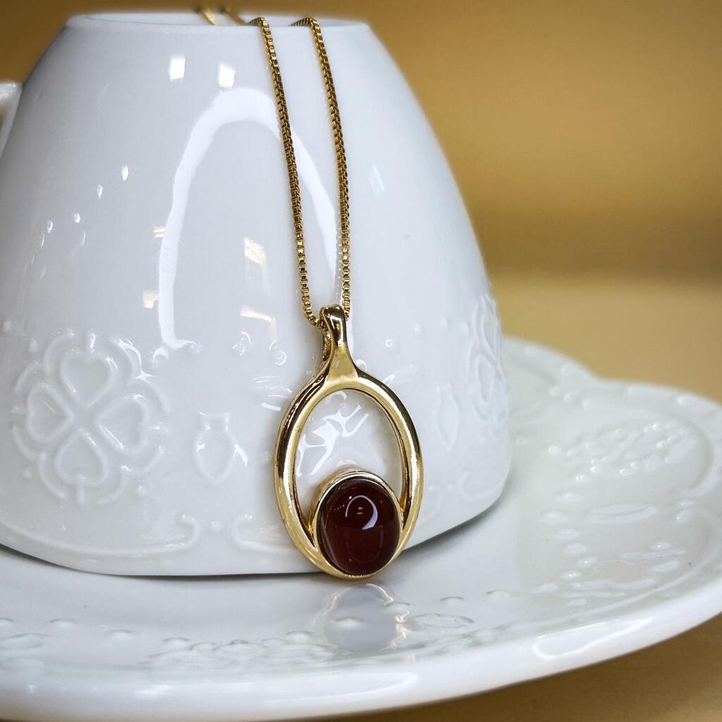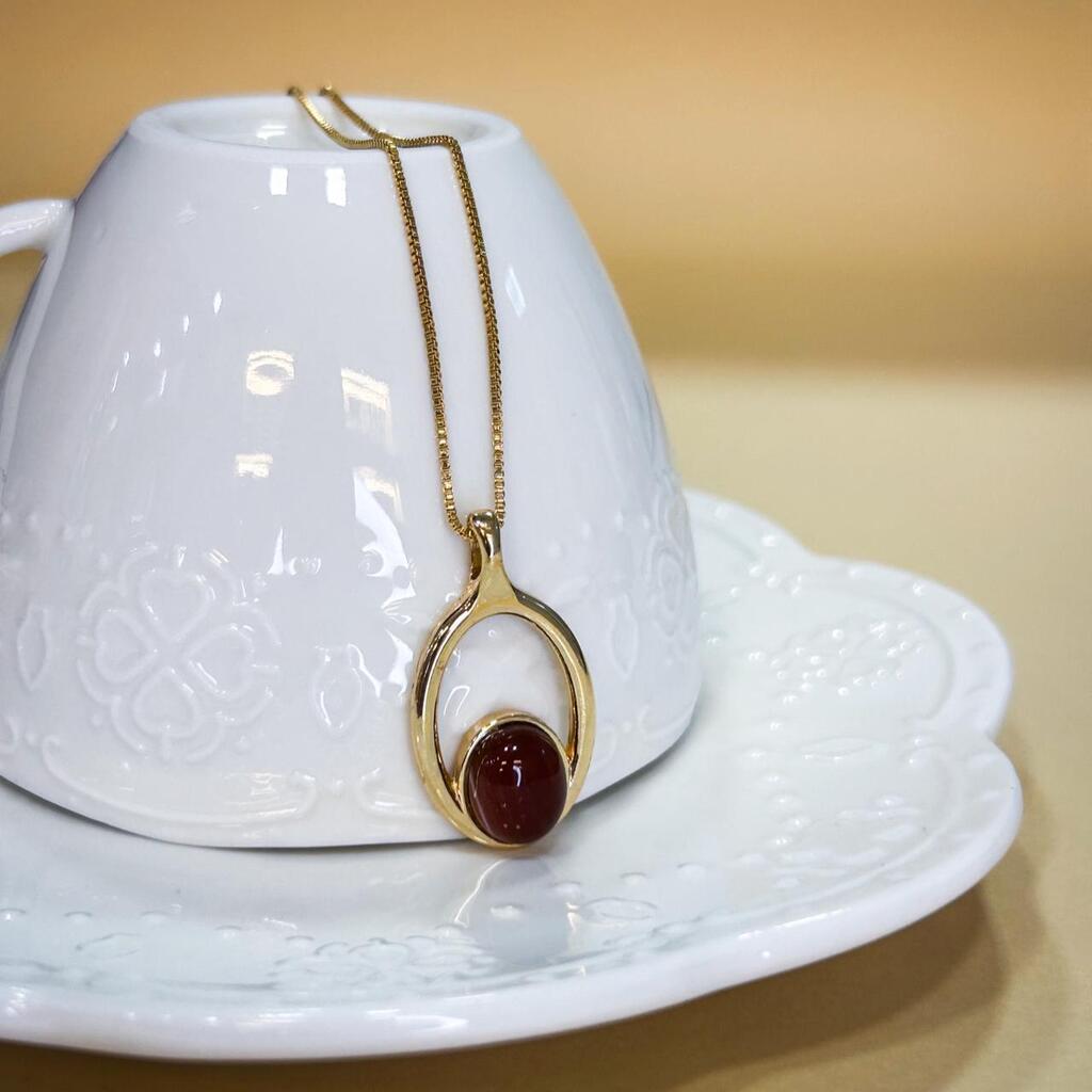 O Colar Magnólia Ágata Vermelha transmite intensidade e feminilidade. A pedra vermelha ganha sofisticação com o banho em ouro 18k.