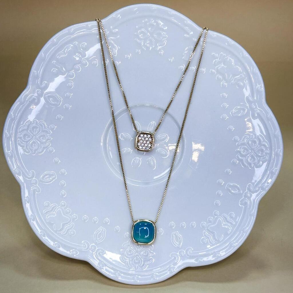 Colar - Total: 45cm de comprimento + 8cm de extensor | Menor: 35,7cm | Pingentes: 0,8x0,8 e 1,2x1,2