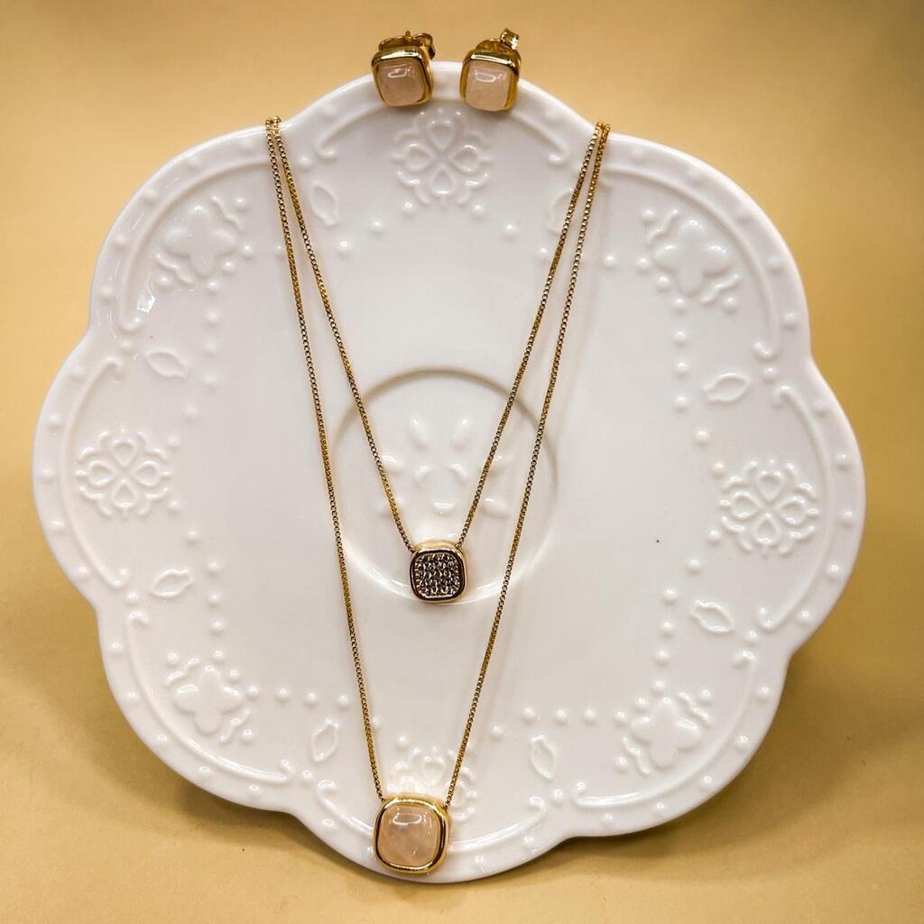 O Conjunto Primavera Quartzo Rosa evoca romantismo e feminilidade. A pedra rosa suave é realçada pelo banho em ouro 18k, resultando em uma joia delicada e atemporal.